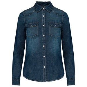 Kariban K518 - Blau Jeans - DAMEN LANGARM DENIM BLUSE