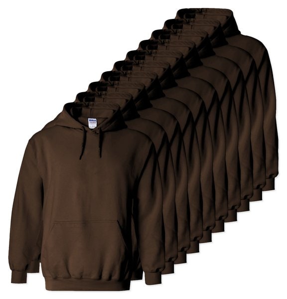 Pack mit 10 Gildan 18500 - Dunkle Schokolade - Heavy Blend™ Hooded Sweatshirt