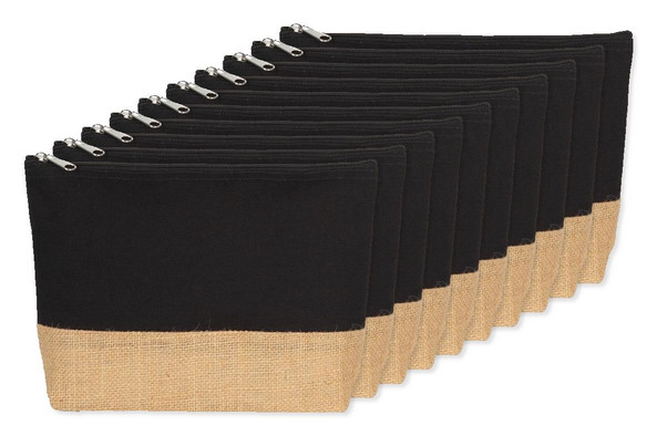 Pack mit 100 Kimood KI0276 - Schwarz/Natur - Baumwolltuch-Jute-Täschchen