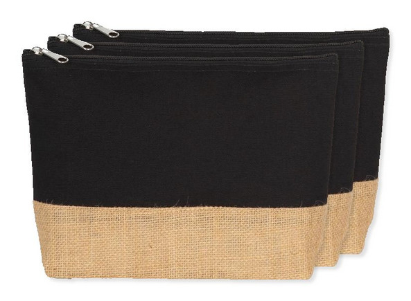 Pack mit 30 Kimood KI0276 - Schwarz/Natur - Baumwolltuch-Jute-Täschchen