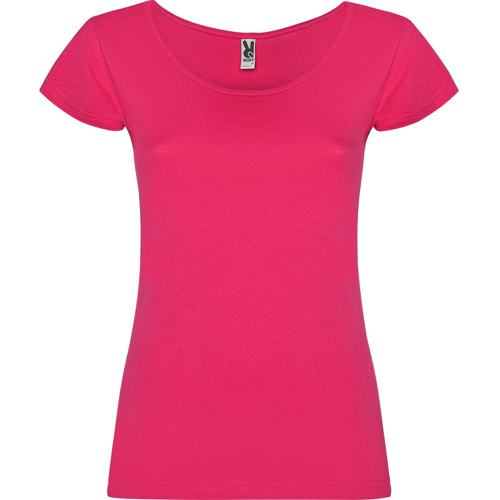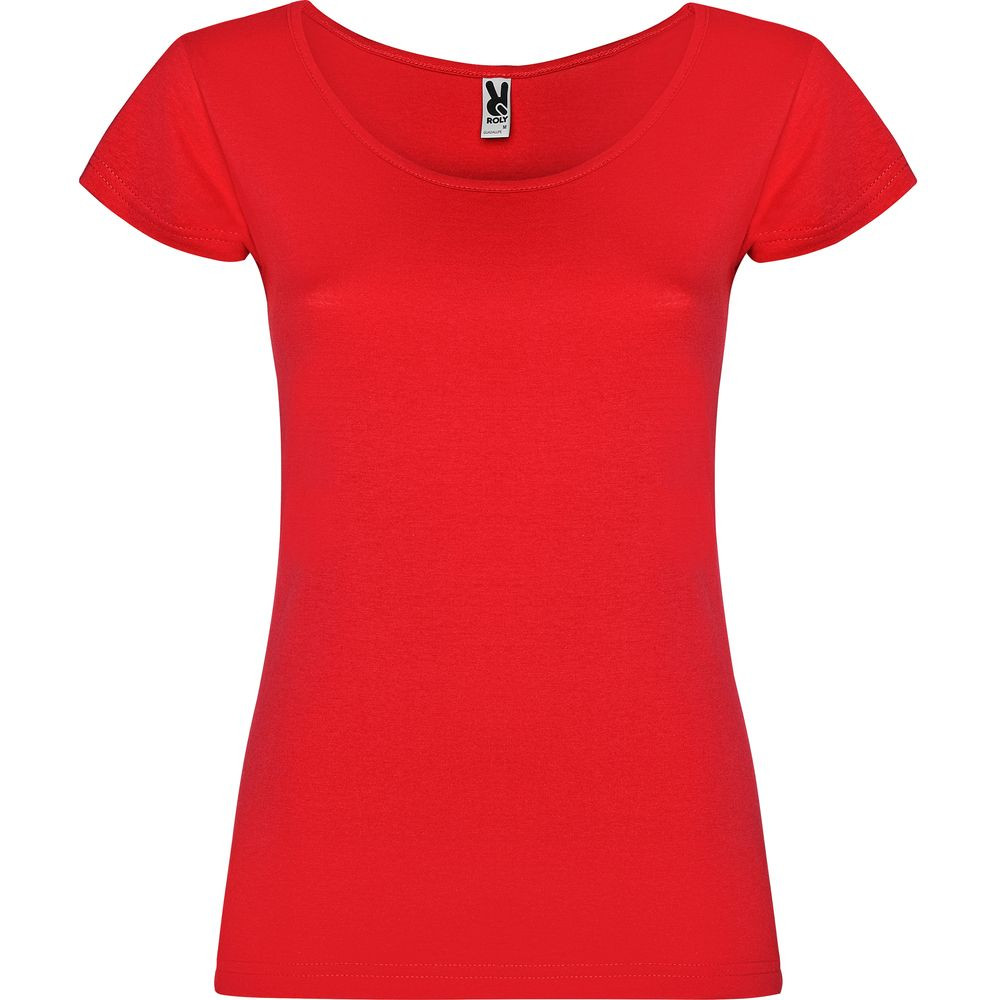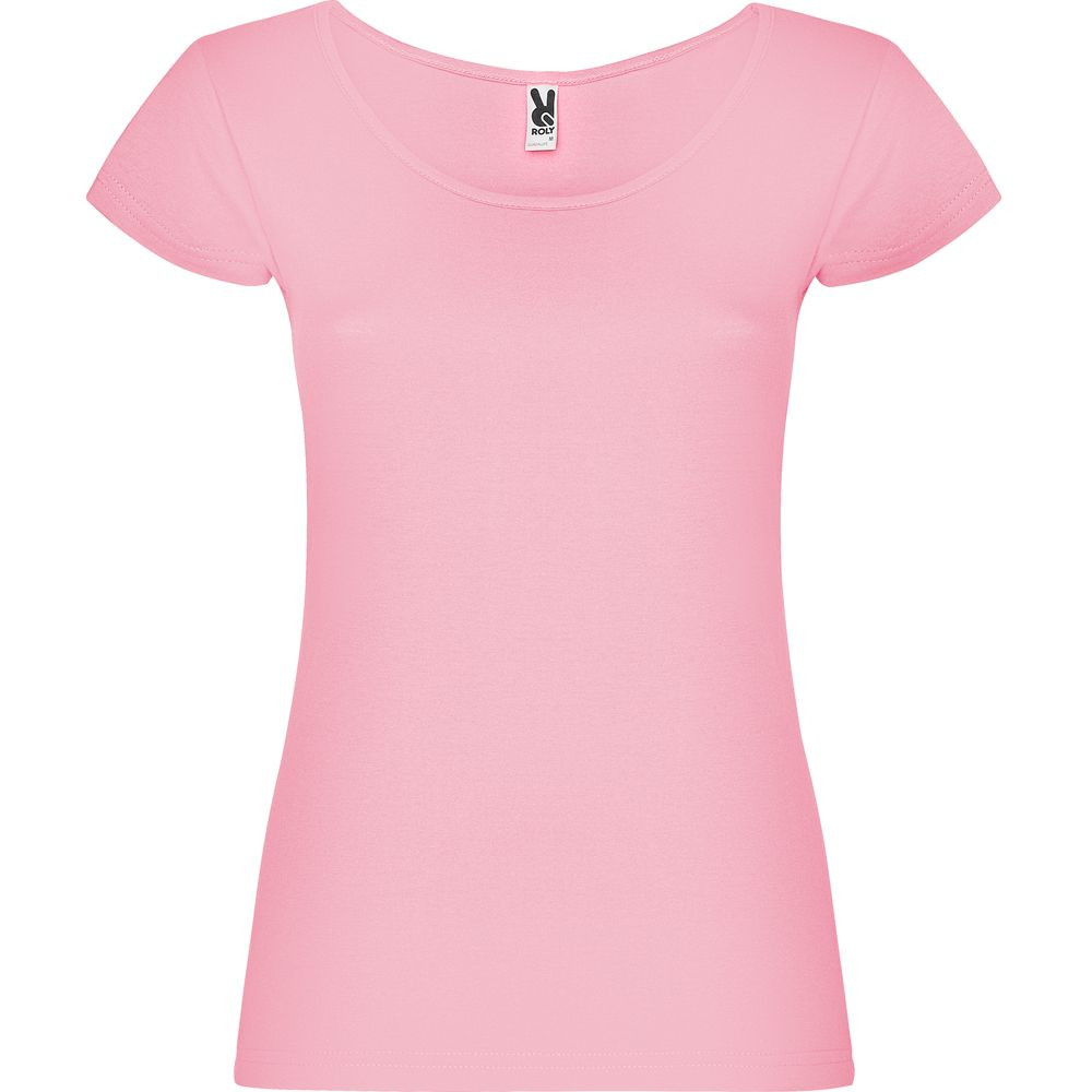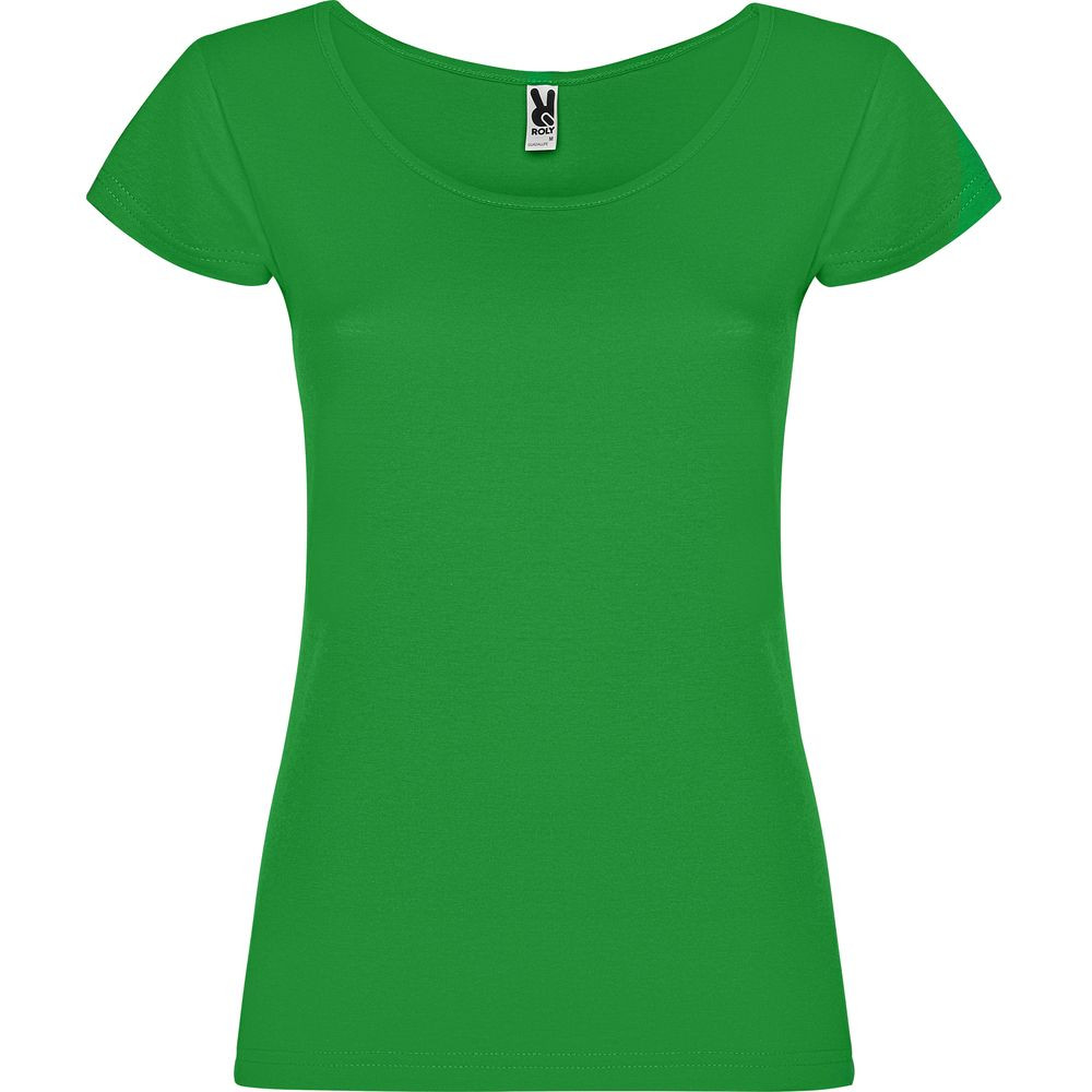 Damen T-shirt tailliert, kurzarn und mit tiefem Rundhalsausschnitt. Seitennähte.
