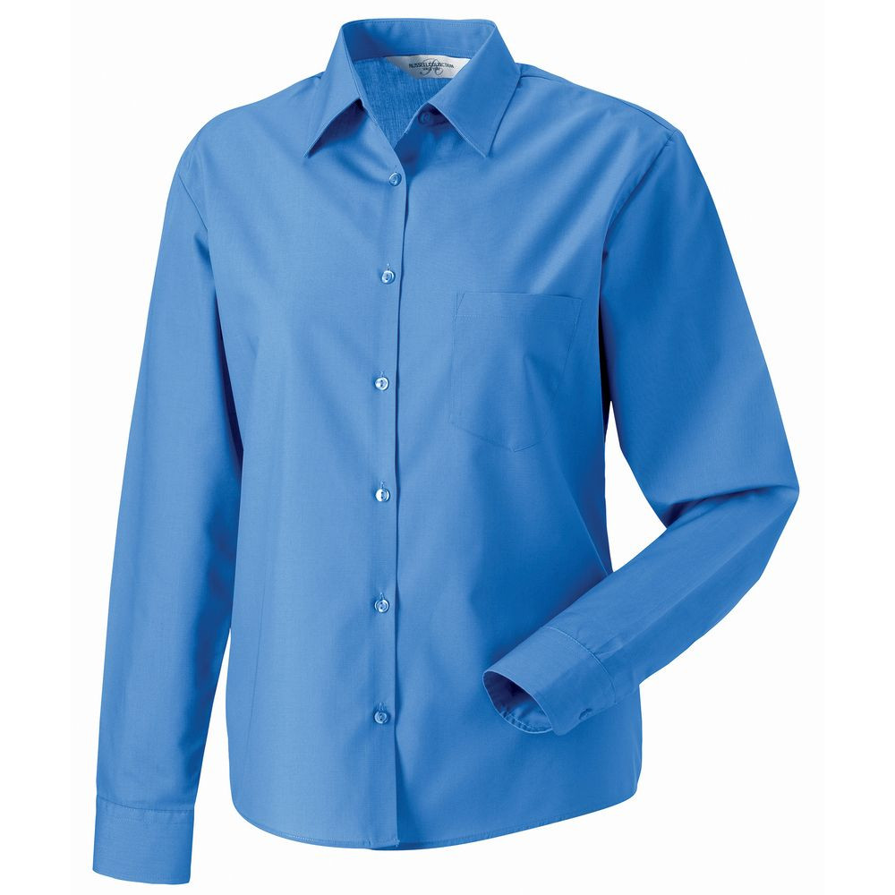 Hergestellt aus einem Klassiker unter den Hemd-/Blusenstoffen, der Eleganz, Strapazierfähigkeit und Tragekomfort gekonnt kombiniert. Eine schicke, elegante Bluse aus feiner Popeline. Klassischer Kragen mit einem Knopf. Abgerundete und mit zwei Knöpfen verstellbare Manschetten. V-förmige Brusttasche links. Abgerundeter Saum.