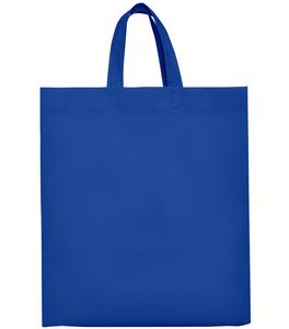 Tasche aus Polypropylen, (sog. Nonwoden-Material), hitze-versiegelte Nähte. Kurze Tragegriffe. Bodenfalte und Seitenfalte.