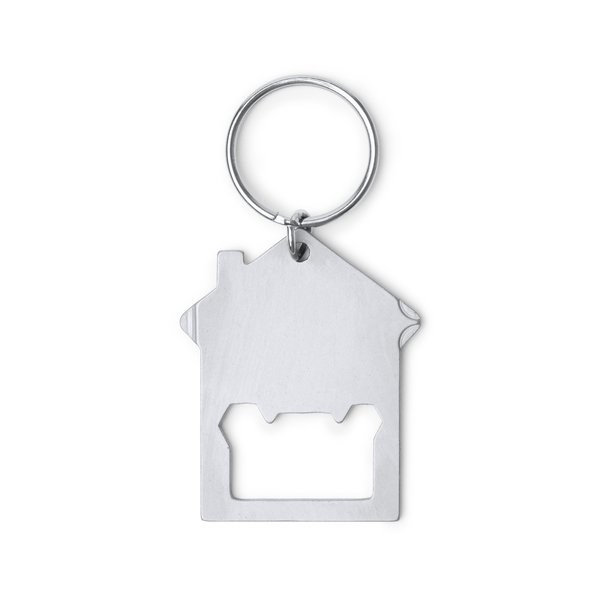 Multi-Tool-Schlüsselanhänger aus Edelstahl in Form eines Hauses.