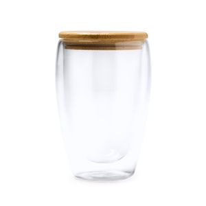 VERTUS Doppelwandiges Glas aus Borosilikatglas mit Bambusdeckel
